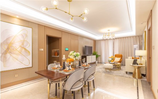 雖然沒有直接光源,卻通過不同形式的光效渲染,生成一種“無影照明”。在墻壁埋藏燈帶,讓燈光像水一樣洗過墻面,為空間增添現代感。